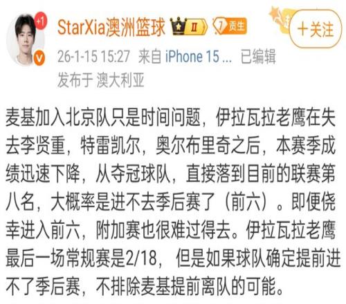 北京首钢本赛季可以说是高开低走,赵睿健康的时候,北京首钢成绩不错,然而现在是出现了伤兵满营的情况,赵睿、陈盈骏、斯佩尔曼先后受伤,这还不包括带伤比赛的周琦,刚伤愈的丘天等人。根据媒体人报道,NBA名将麦基确定会加盟北京首钢,甚至有可能在第一阶段就完成签约。