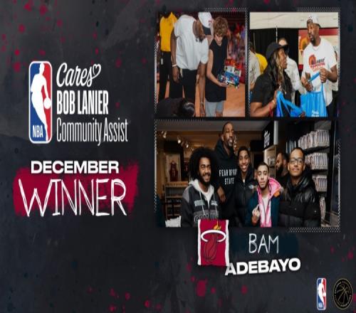 官方:热火中锋阿德巴约获得十二月份鲍勃兰尼尔社区关怀奖
