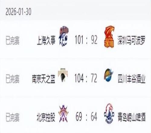 CBA排名更新!广东男篮五连胜,山西连败北京输球,辽宁排名第13